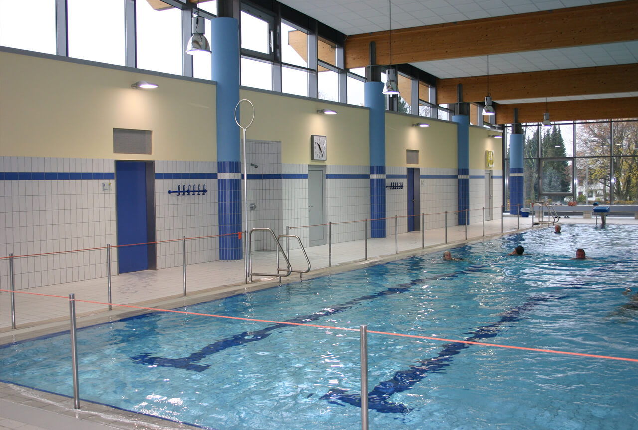 Für einen unbeschwerten Besuch in unserem Schwimmbad helfen Ihnen bereits zwei ausgeschildete Parkplätze. Im Inneren steht Ihnen dann eine rollstuhlgerechte Umkleide inklusive Dusche und WC zur Verfügung. Außerdem verfügt das Hallenbad im Schwimmerbereich über einen mobilen Lifter. Mit dieser mechanischen Ein- und Ausstiegshilfe können Sie das Sportbecken wie auch das Springerbecken ohne Probleme betreten bzw. verlassen.